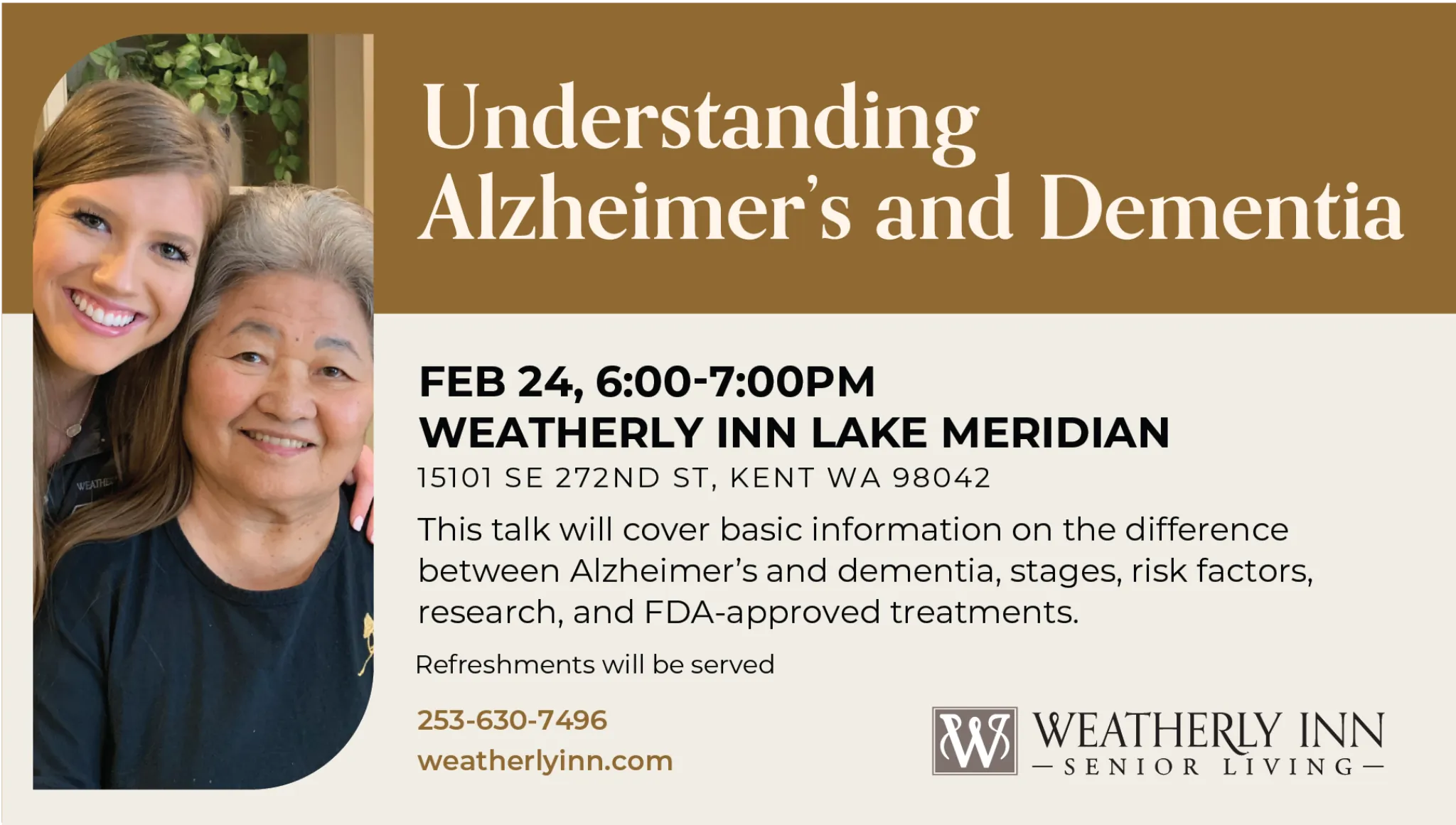 This talk will cover basic information on the difference between Alzheimer’s and dementia, stages, risk factors, research, and FDA-approved treatments. Refreshments will be served.